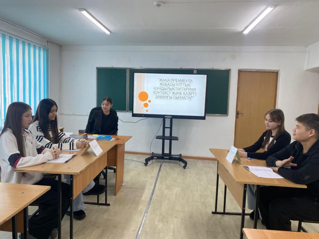 26 ақпанда Жоғары техникалық колледжде «Жаңа преамбула жобасы: ұлттық құндылықтар, тарихи контекст және заманауи сын-қатерлер» тақырыбында пікірталас алаңы өтті.