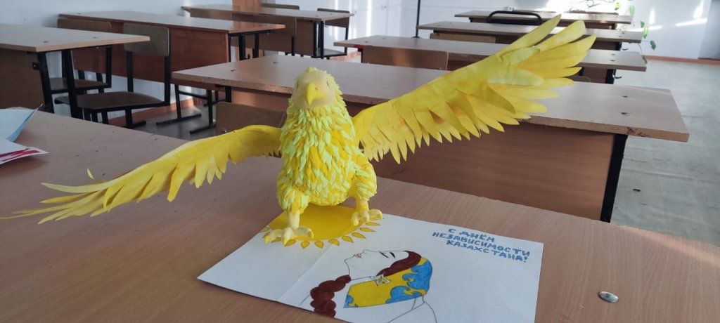 В преддверии Дня Республики Казахстан студентка группы Д-11 Мартынова Светлана представила яркую и выразительную творческую работу — орла, выполненного из пластилина.