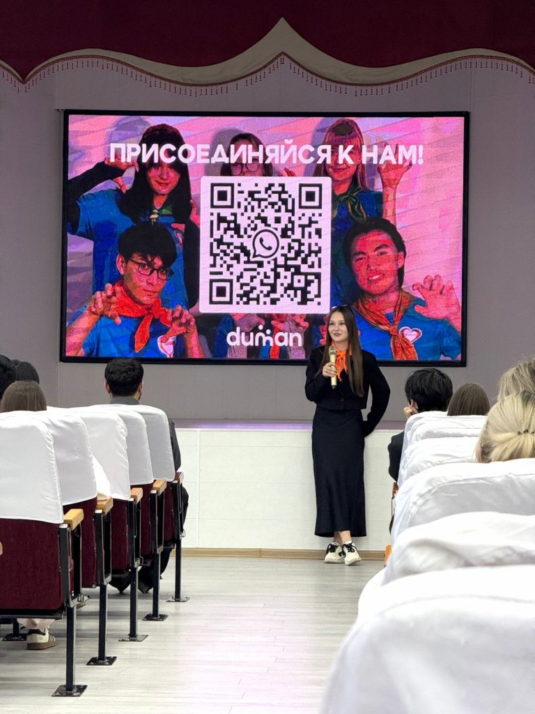 25 қыркүйекте Щучинск қаласының Жоғары техникалық колледжінде студенттердің «Думан» педагогикалық отрядымен кездесуі өтті.