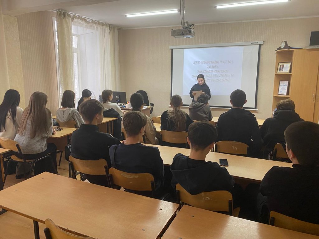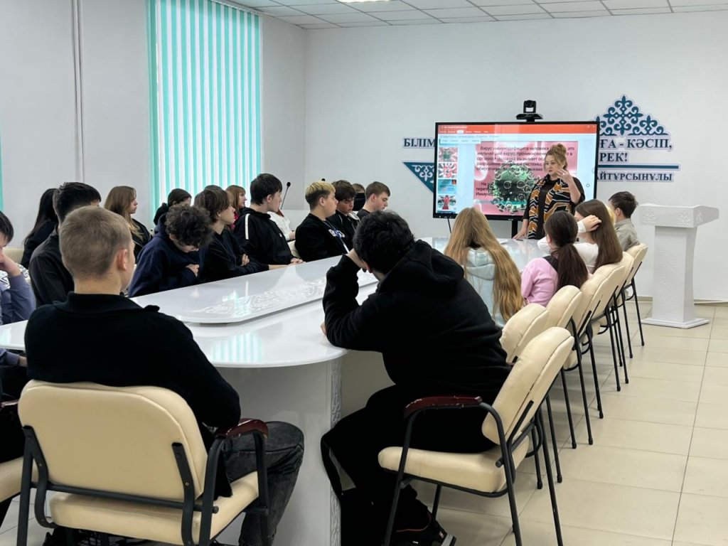 10 қараша күні Щучинск қаласының Жоғары техникалық колледжінде 1–4 курс студенттері үшін «Өңірдің экологиялық мәселелері және оларды шешу жолдары» тақырыбында кураторлық сағат өтті
