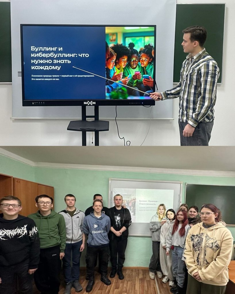 Студенттерге әлеуметтік желілер мен анонимді чаттарға қатысудың қауіптері түсіндіріліп, буллингтің түрлері (вербалды,...