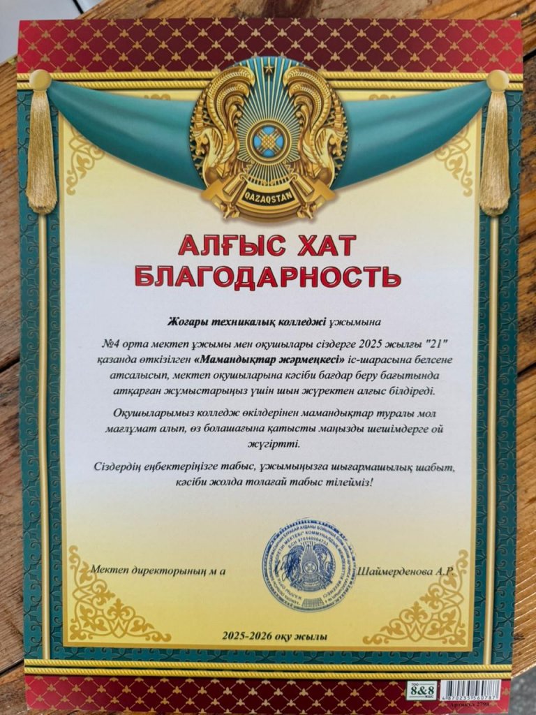 21 қазан күні Щучинск қаласының №4 орта мектебінде өткен кәсіби бағдарлау жәрмеңкесіне біздің колледждің өкілдері қатысты.