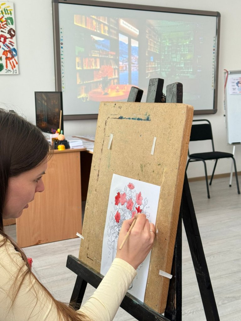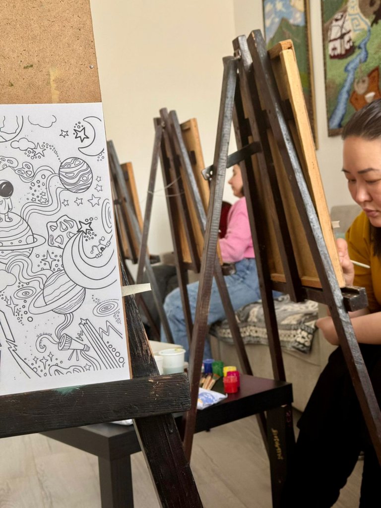 Біз антистресс бояуларын бірге бояп, әңгімелесіп, көңіл-күймен бөлісіп, жай ғана біраз баяулап, тынығуға мүмкіндік бердік.