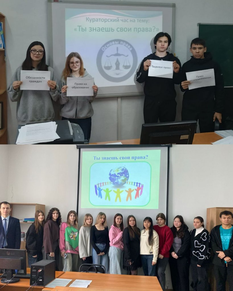 Щучинск қаласындағы Жоғары техникалық колледжде «Ұшқыр ой алаңы» жобасы аясында құқық тақырыбында викторина түрінде кураторлық сағат өтті
