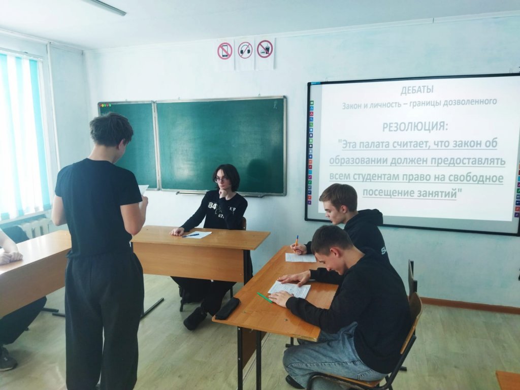 Дебатқа ПО-12 тобының студенттері қатысты: Стрельников Кирилл, Пак Данил, Тюльков Станислав және Шалышкин Никита.