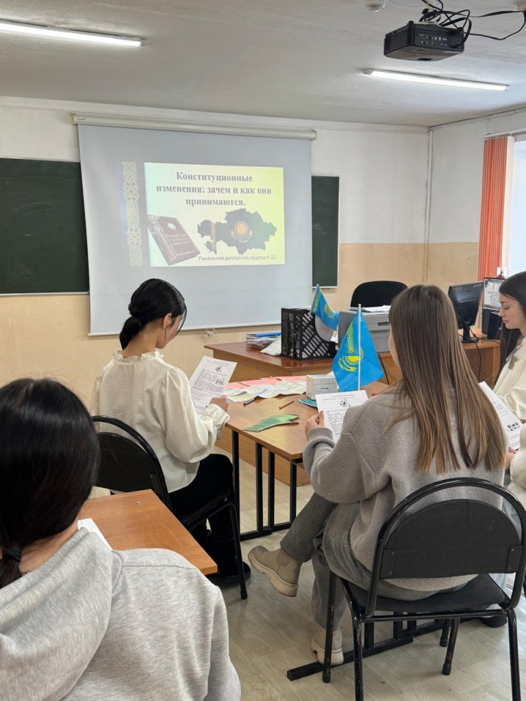 Кездесу барысында студенттер Конституцияға енгізілетін өзгерістердің себептерін, оларды қабылдау тетіктерін және мемлекеттің дамуы үшін маңызын талқылады 🇰🇿. Ашық диалог форматында қатысушылар өз пікірлерін білдіріп, сұрақтарын қойды .