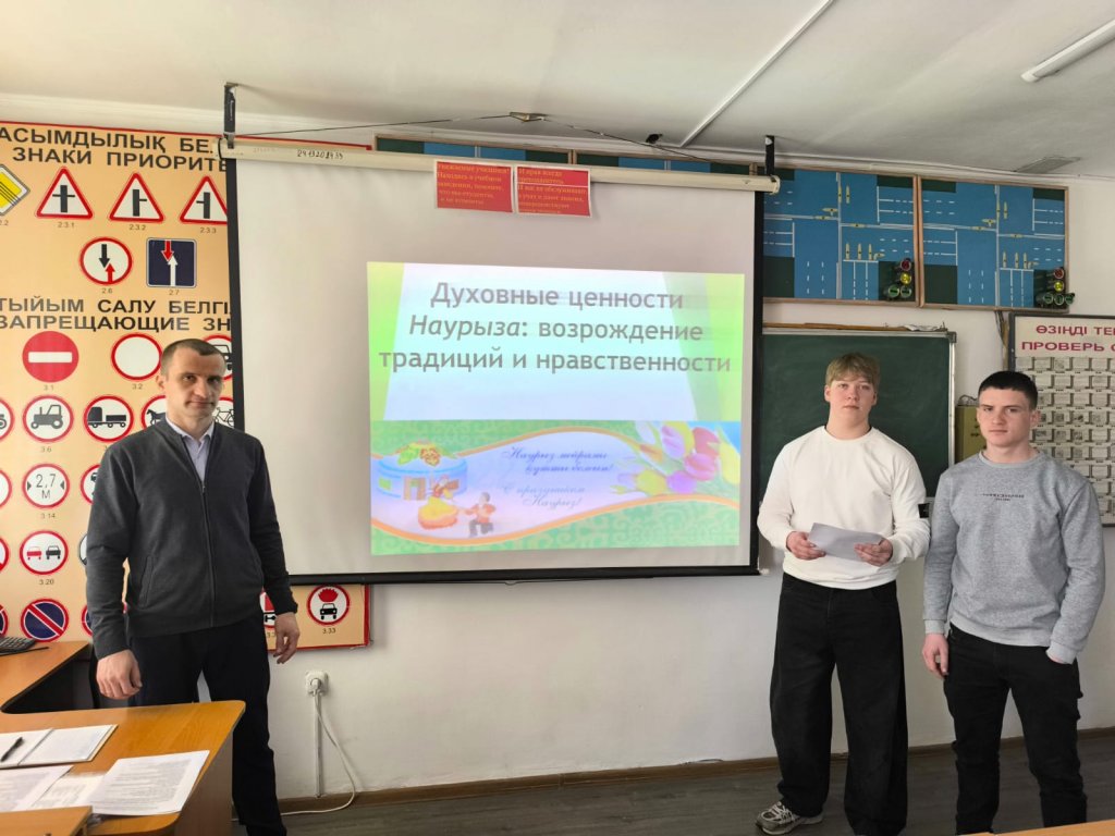 Жоғары техникалық колледжде 1–4 курс студенттері арасында «Наурыздың рухани құндылықтары: дәстүр мен адамгершіліктің жаңғыруы» тақырыбында кураторлық сағат өтті. Іс-шара барысында студенттер Наурыз мейрамының терең мағынасы, ұлттық дәстүрлер мен адамгершілік құндылықтары туралы пікір алмасты .