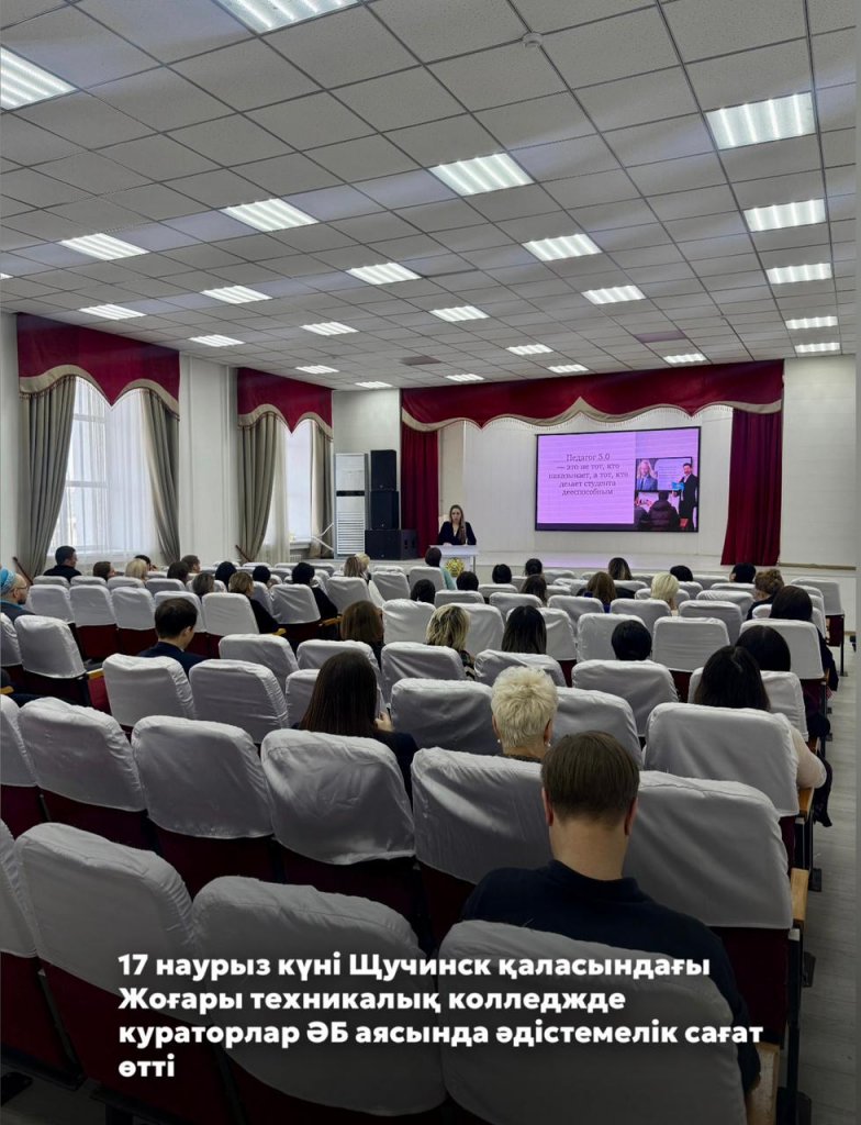 17 наурыз күні Щучинск қаласындағы Жоғары техникалық колледжде кураторлар ӘБ аясында әдістемелік сағат өтті