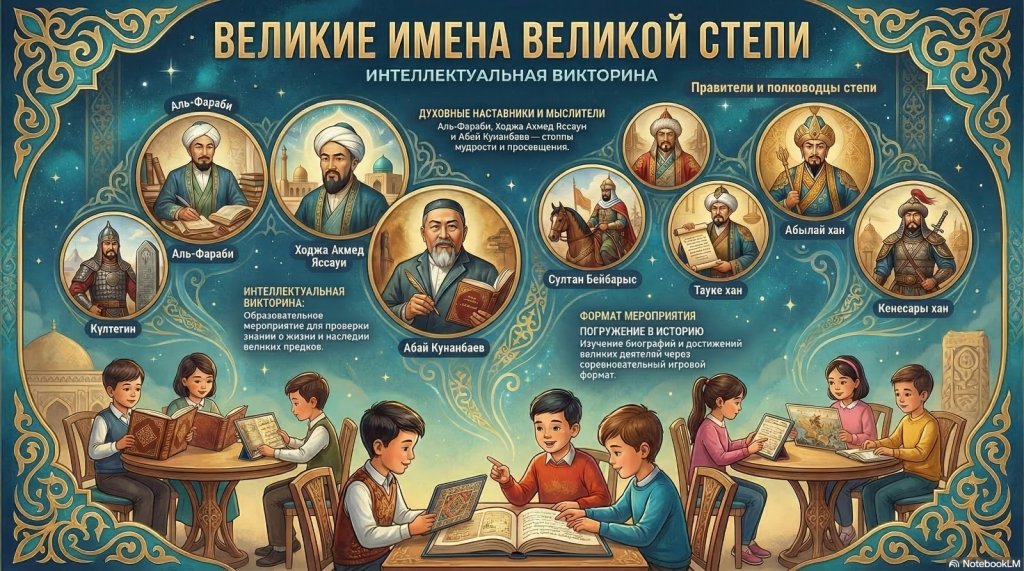 Іс-шара барысында студенттер Қазақстанның тарихи тұлғалары, олардың мәдениет, ғылым және мемлекет дамуына қосқан үлесі туралы білімдерін көрсетті. Қатысушылар сұрақтарға белсенді жауап беріп, өздерінің зеректігін, тарихқа деген қызығушылығын және топпен жұмыс істеу дағдыларын танытты.
